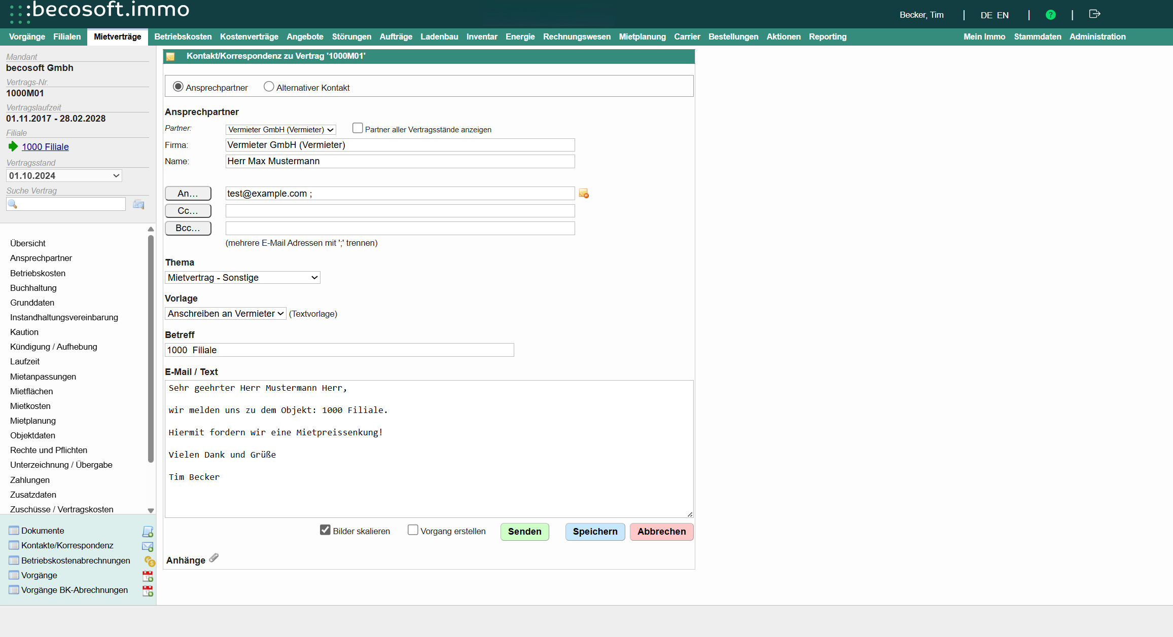 Verwalten Sie alle relevanten Vertrags- und Filialdaten zentral und übersichtlich – wie Ansprechpartner, Laufzeiten, Kautionen, Mieten, Betriebskostenvereinbarungen und Anpassungsklauseln. So behalten Sie jederzeit den Überblick über Ihre Mietverträge und Filialstrukturen – standortübergreifend und revisionssicher.