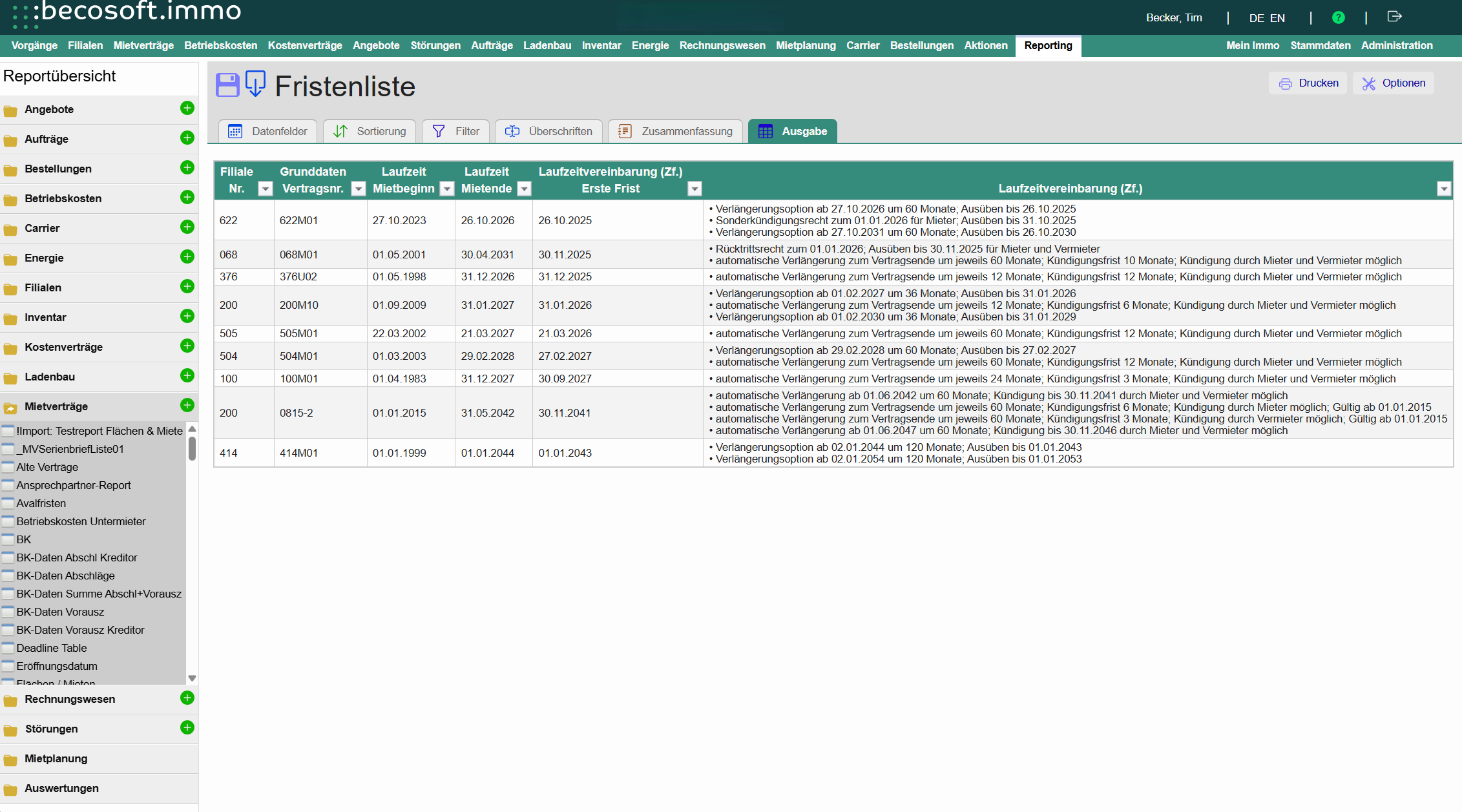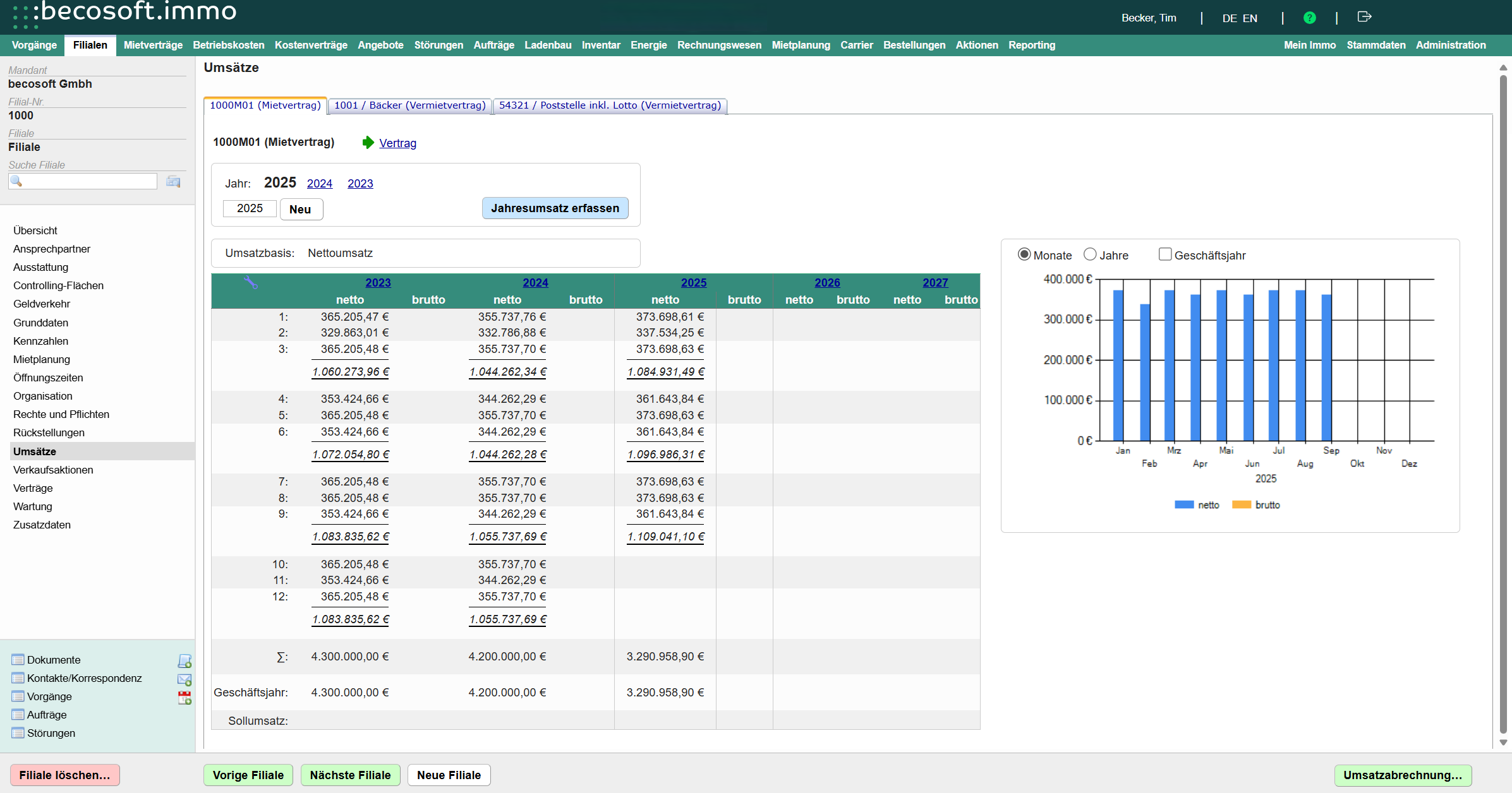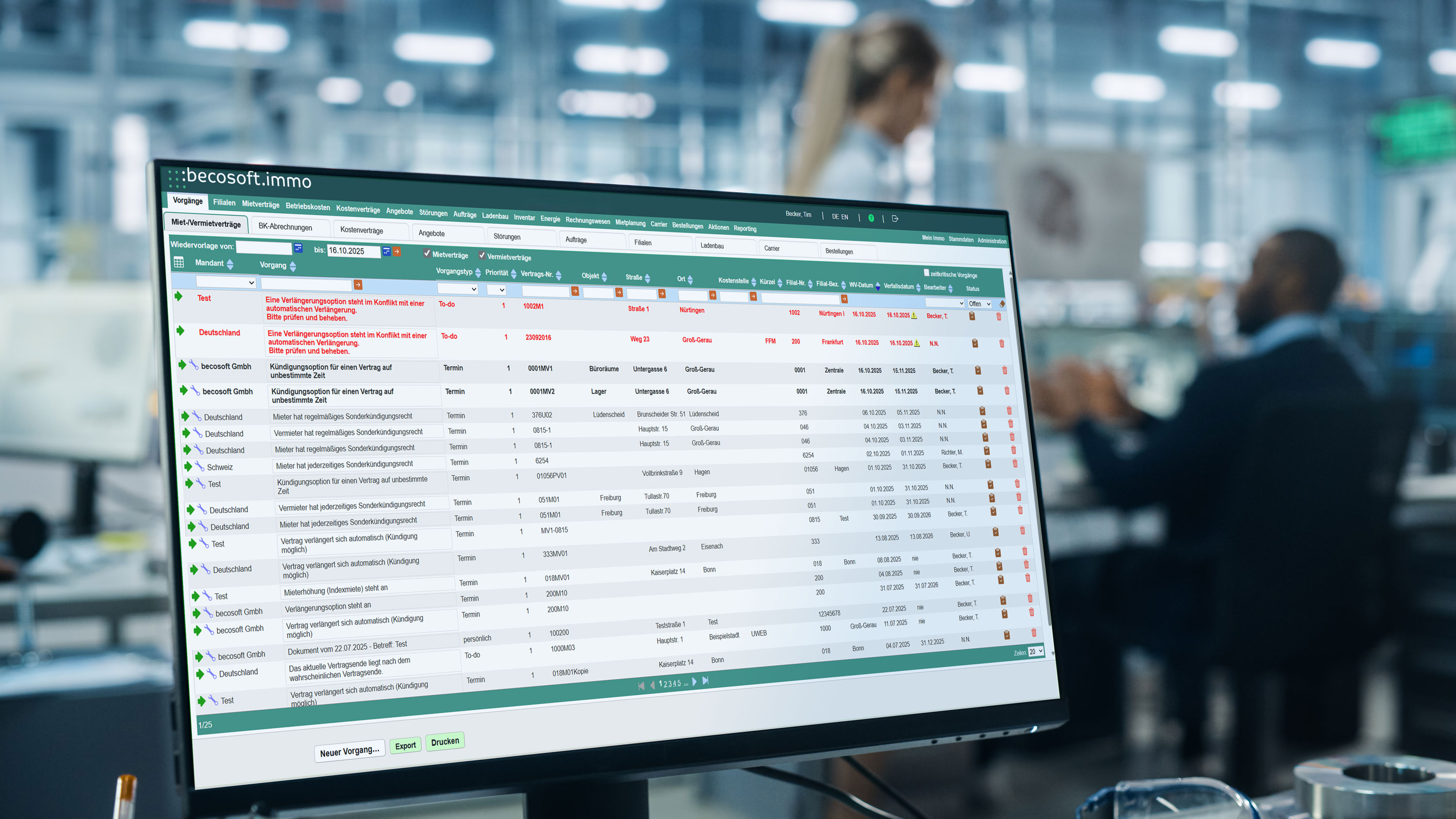 Steuern Sie Ihre Standort- und Mietdaten zentral, behalten Sie Ihre Kommunikation im Griff und gewinnen Sie durch aussagekräftige Reportings maximale Transparenz. Ob 100 oder 1.000 Filialen – mit :becosoft.immo legen Sie den Grundstein für mehr Effizienz im Tagesgeschäft.